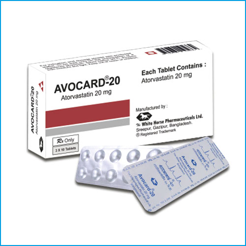 Avocard-10 (10 mg) Tablet contains atorvastatin 10 mg, used to lower high cholesterol and triglyceride levels and reduce the risk of heart disease. Therapeutic class: Lipid-lowering agent (Statin). Type of drug: HMG-CoA reductase inhibitor that reduces cholesterol production in the liver.